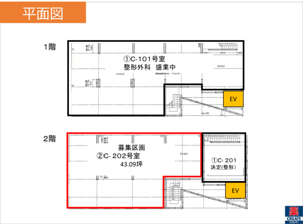 | ①1階(C-101)、2階(C-201) | 整形外科 盛業中 | ||