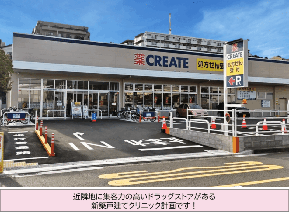 ・近隣に集客力の高いドラッグストアがあり、クリニックの早期認知度向上と集患が期待できます。