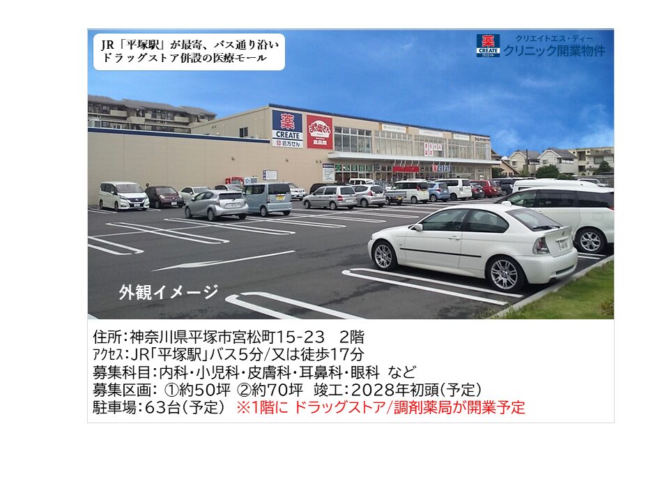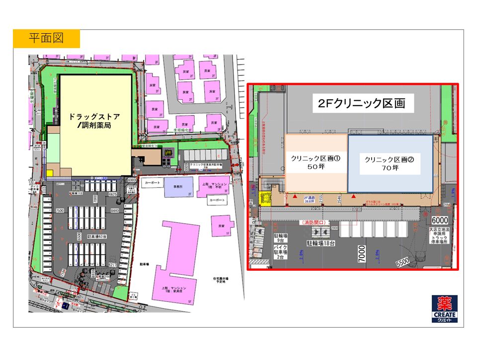 ・集客力のあるドラッグストアが併設するため、早期の認知度向上と集患が期待できます。