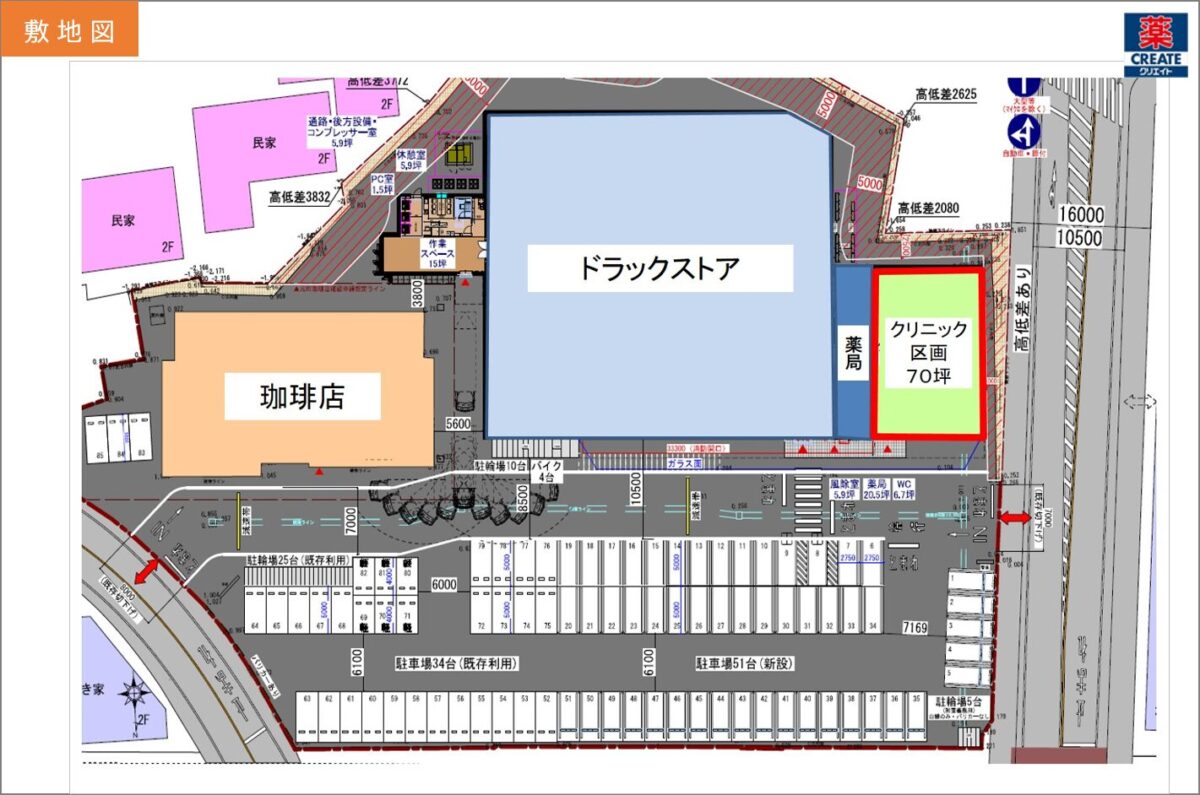 ・敷地内に集客力のあるドラッグストアが併設予定。