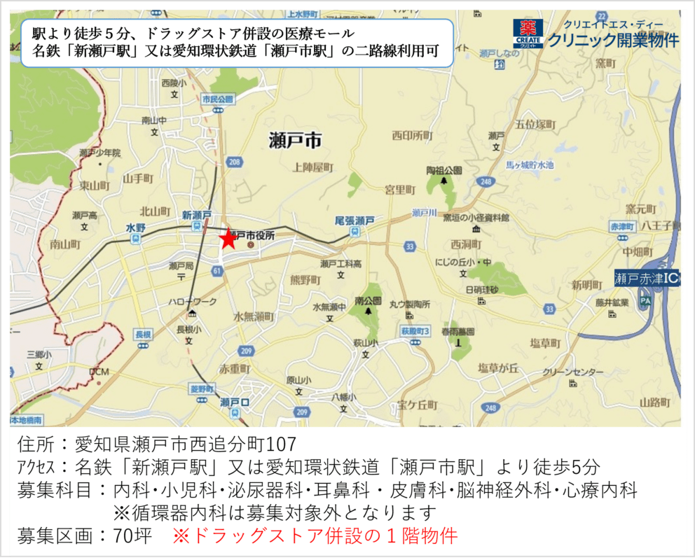 | 交通アクセス | 名鉄「新瀬戸駅」又は愛知環状鉄道「瀬戸市駅」より徒歩5分 | ||