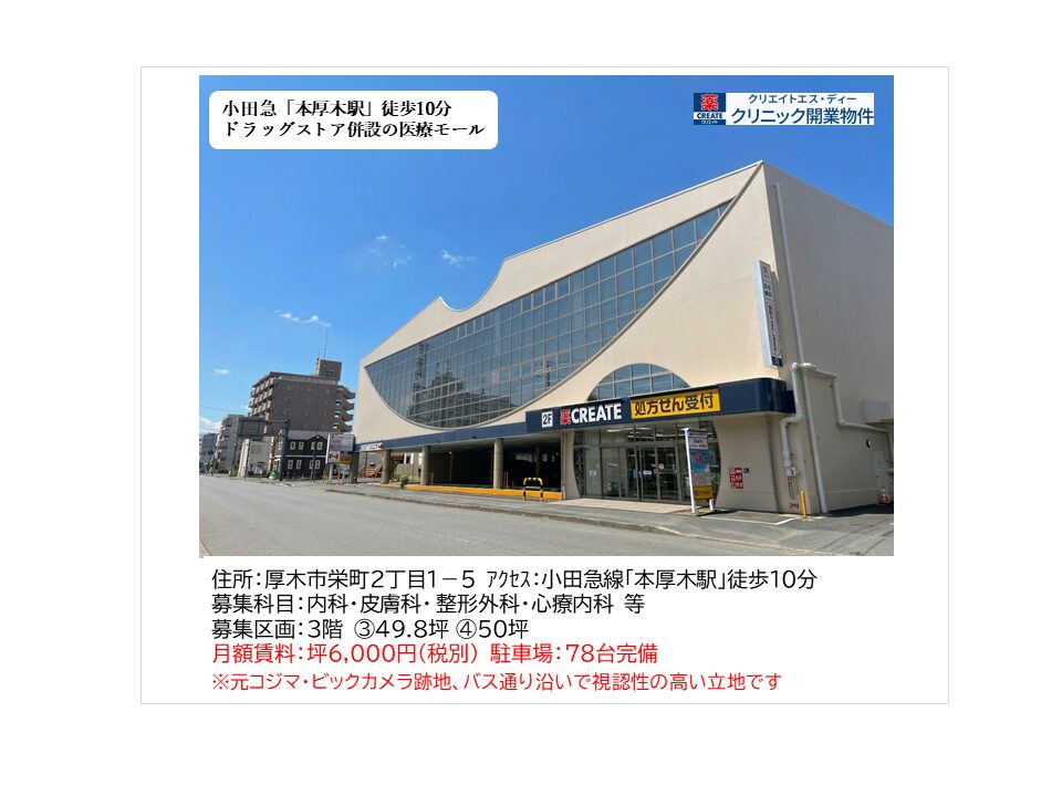 ・アクセス抜群:「本厚木駅」徒歩10分、視認性の高い立地の医療モール