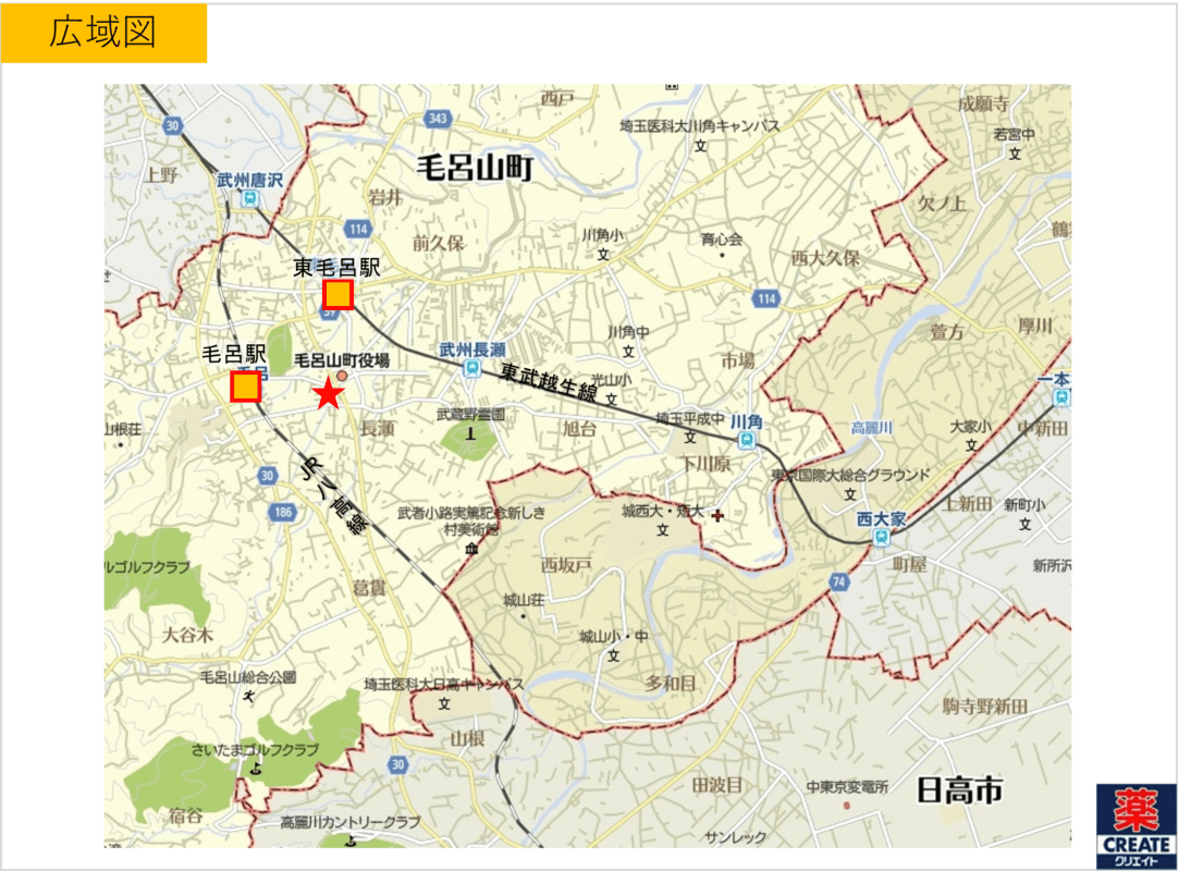 | 交通アクセス | JR八高線「毛呂駅」より徒歩8分/ 又は越生線「東毛呂駅」から徒歩12分 | ||