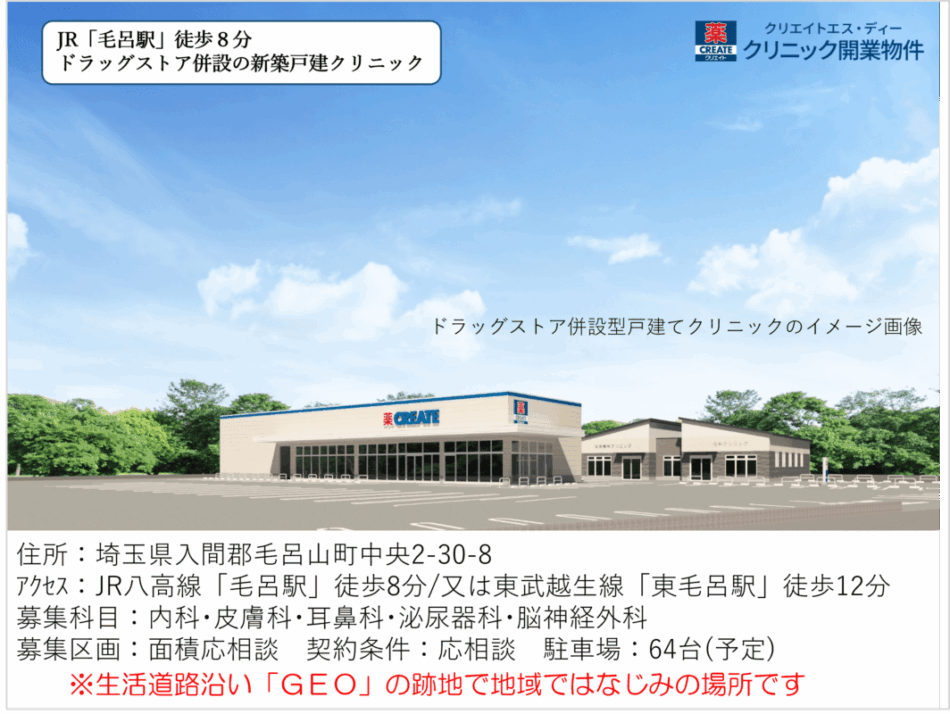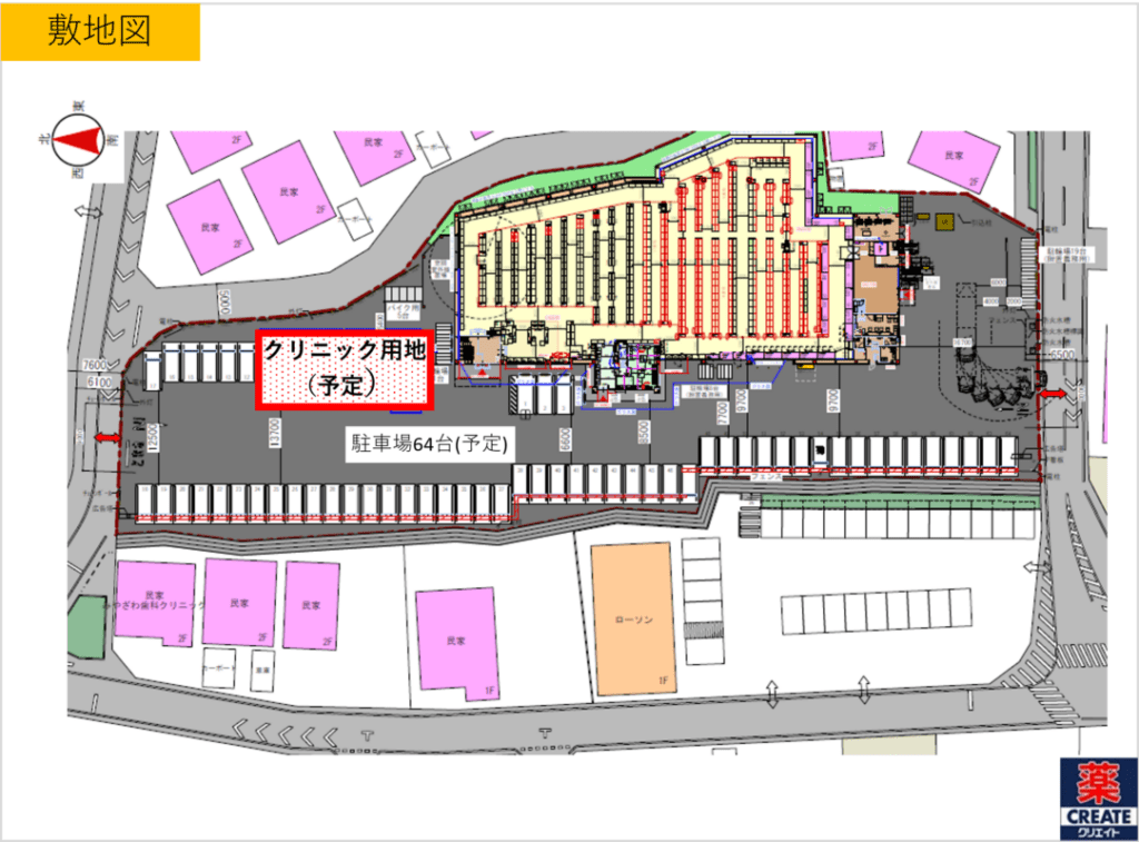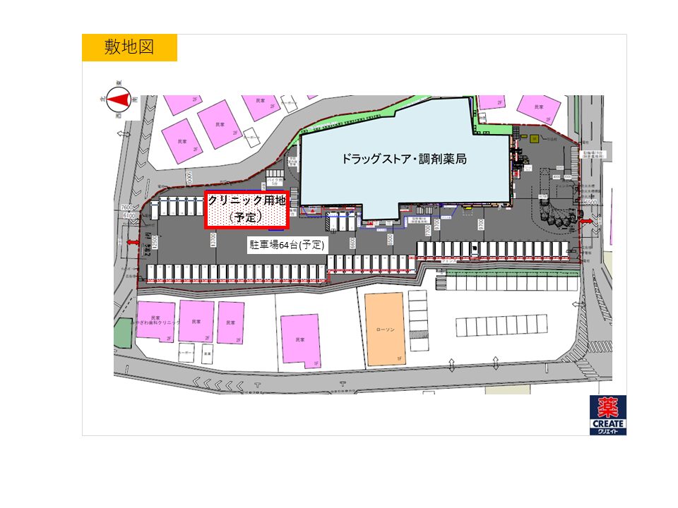 ・隣接地に集客力の高いドラッグストアがあり、クリニックの早期認知度向上と集患が期待できます。