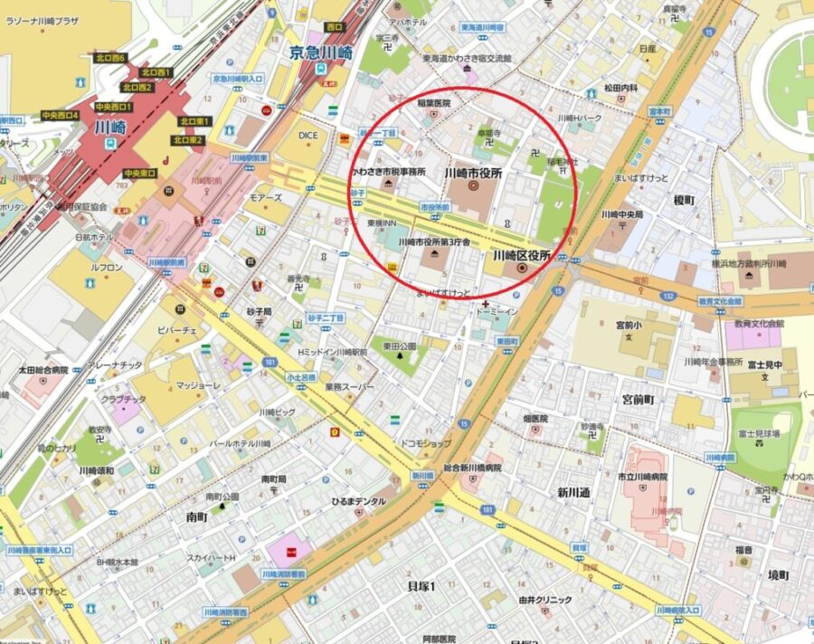 ・住民の皆さまには説明不要のランドマーク川崎市役所の真横で認知度は抜群です。